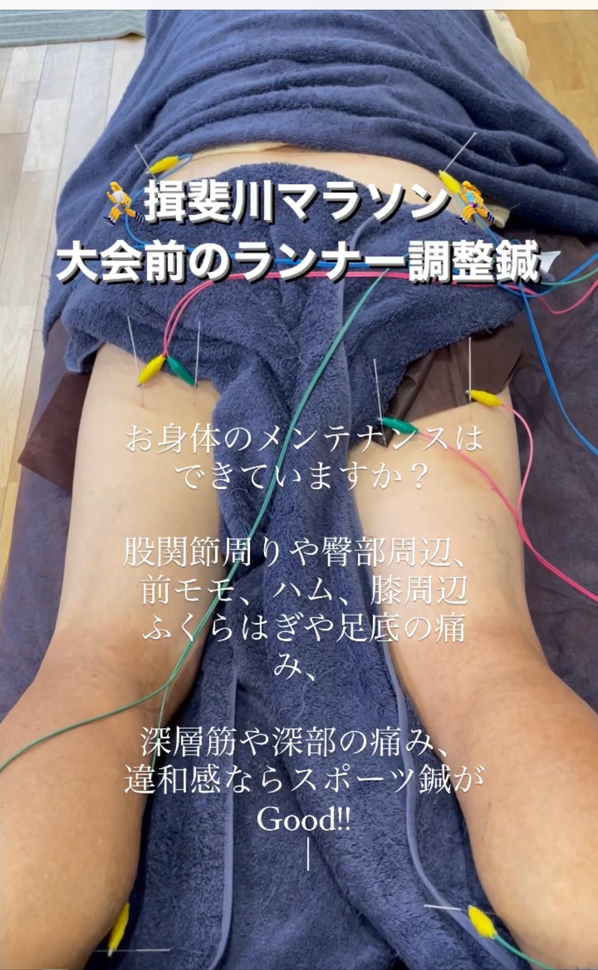 【揖斐川マラソン大会前のランナー調整鍼】